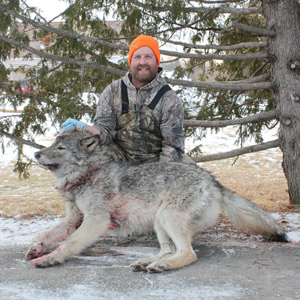 Our wolf hunts our done in late February and early March when the wolves our packed up and getting real hungry from the long winter. The bait sites will be baited 6 to 8 weeks ahead of time and have cameras monitoring their movements. The guide will take you out in morning to your ground blind for the day which is heated with a portable heater for those extra chilly mornings. Once there, you will be there for the day or until a wolf is shot. The guide will take care of skinning out the wolf. Truly a beautiful time of year to hunt when nothing else is going on. With the way we have the pricing for the hunt, its truly an incentive for the guide to get you a wolf. Take minimum of 2 hunters at a time and maximum of 6 hunters for the year.